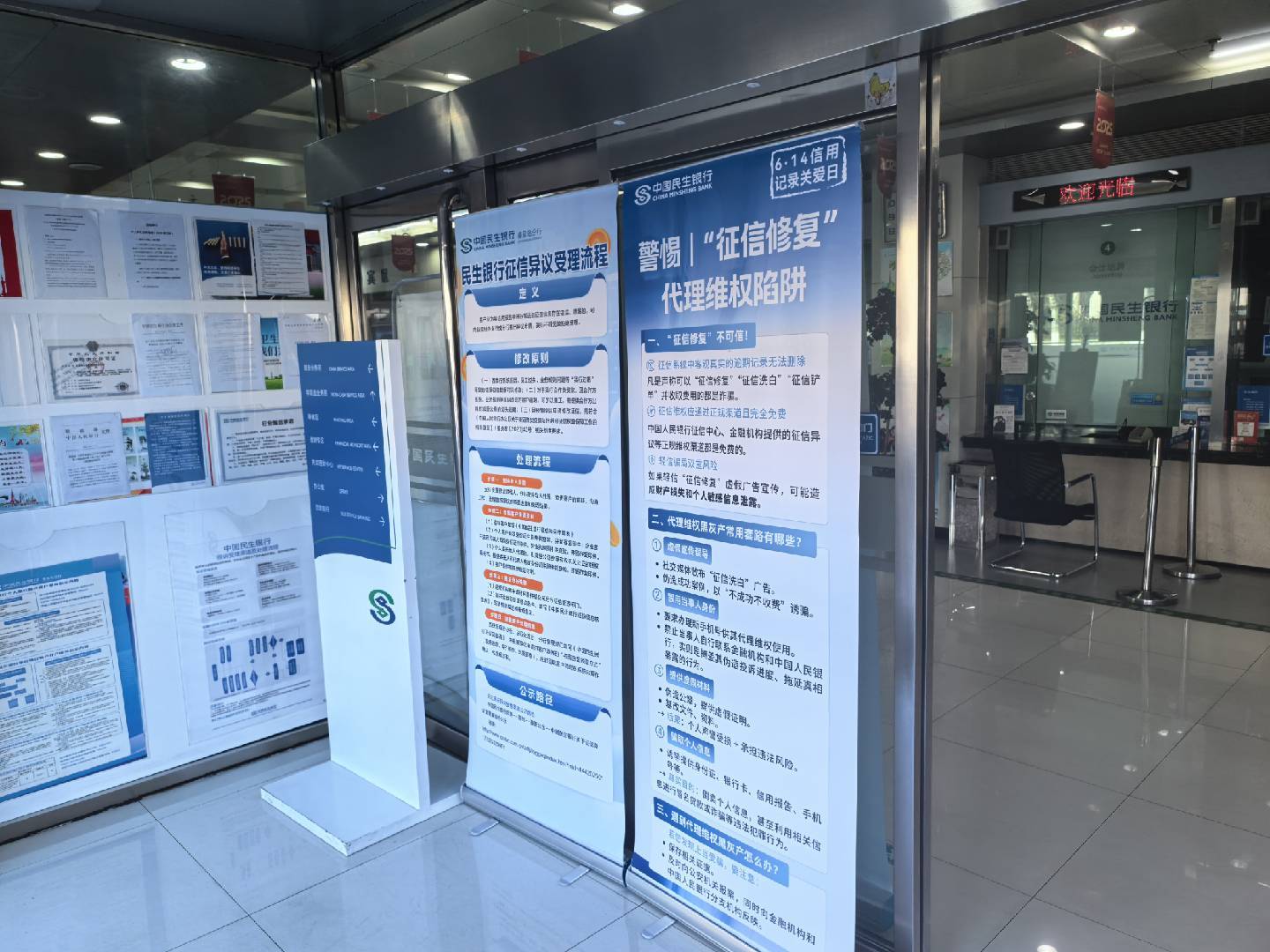 民生银行石家庄分行已设置8个“征信权益保护站”站点,选取的原则是征信投诉案件集中度较高支行。站点设有异议处理流程的宣传海报,专业的工作人员会耐心解答关于征信报告的任何疑问。站点的设置,能够为民众针对征信维权提供贴心的解决方案,是民众的“征信守护岗”,为市民撑起权益保护伞。